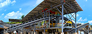 砂石料生產(chǎn)線基本工作原理為:物料集中送進(jìn)料倉,經(jīng)過破碎制砂設(shè)備依次進(jìn)行三重等級(jí)破碎,其間通過輸送機(jī)連接到振動(dòng)篩,并通過振動(dòng)篩篩分出不同規(guī)格的石料產(chǎn)品和機(jī)制砂。為保護(hù)環(huán)境,可配置相應(yīng)的除塵設(shè)備實(shí)現(xiàn)清潔生產(chǎn)。