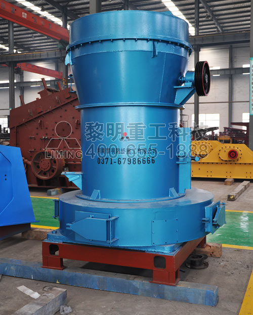 在工作過程中物料經(jīng)粉碎到所需粒度后,由提升機將物料送至儲料斗,再經(jīng)振動給料機將料均勻連續(xù)的送入主機磨室內(nèi),由于旋轉(zhuǎn)時離心力作用,磨輥向外擺動,緊壓于磨環(huán),鏟刀鏟起物料送到磨輥與磨環(huán)之間,因磨輥的滾動而達到粉碎目的。物料研磨后的細(xì)粉隨鼓風(fēng)機的循環(huán)風(fēng)被帶入分析機進行分選,細(xì)度過粗的物料落回重磨,合格細(xì)粉則隨氣流進入成品旋風(fēng)集粉器,經(jīng)出粉管排出,即為成品。