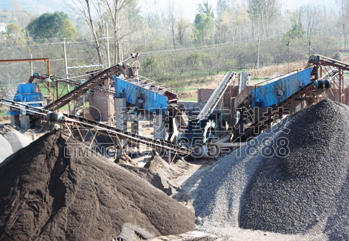 大塊石料經(jīng)料倉由振動(dòng)給料機(jī)均勻地送進(jìn)鄂式破碎機(jī)進(jìn)行粗碎,粗碎后的石料由膠帶輸送機(jī)送到反擊式破碎機(jī)進(jìn)行進(jìn)一步破碎;細(xì)碎后的石料由膠帶輸送機(jī)送進(jìn)振動(dòng)篩進(jìn)行篩分,篩分出幾種不同規(guī)格的石子,滿足粒度要求的石子由成品膠帶輸送機(jī)送往成品料堆;不滿足粒度要求的石子由膠帶輸送機(jī)返料送到反擊式破碎機(jī)進(jìn)行再次破碎,形成閉路多次循環(huán)。成品粒度可按照用戶的需求進(jìn)行組合和分級(jí),為保護(hù)環(huán)境,可配備輔助的除塵設(shè)備。為滿足客戶不同的加工需要,可配備圓錐式破碎機(jī)、除塵設(shè)備等。