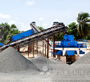 湖南大型破碎機(jī)生產(chǎn)線工作時(shí),大塊石料經(jīng)料倉(cāng)由振動(dòng)給料機(jī)均勻地送進(jìn)顎式破碎機(jī)粗碎,粗碎后的石料由皮帶輸送機(jī)送到反擊式破碎機(jī)細(xì)碎,細(xì)碎后的石料再由皮帶輸送機(jī)送進(jìn)振動(dòng)篩篩分,篩分出幾種不同規(guī)格的石子,滿足粒度要求的石子由成品皮帶輸送機(jī)送往成品料堆;不滿足粒度要求的石子由皮帶輸送機(jī)返料送到反擊式破碎機(jī)再次破碎,形成閉路多次循環(huán)。
