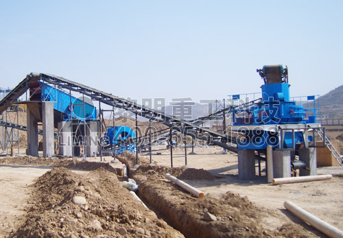 大塊石料經(jīng)料倉(cāng)由振動(dòng)給料機(jī)均勻地送進(jìn)顎式破碎機(jī)粗碎,粗碎后的石料由皮帶輸送機(jī)送到反擊式破碎機(jī)細(xì)碎,細(xì)碎后的石料再由皮帶輸送機(jī)送進(jìn)振動(dòng)篩篩分,篩分出幾種不同規(guī)格的石子,滿(mǎn)足粒度要求的石子由成品皮帶輸送機(jī)送往成品料堆;不滿(mǎn)足粒度要求的石子由皮帶輸送機(jī)返料送到反擊式破碎機(jī)再次破碎,形成閉路多次循環(huán)。