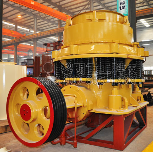 山東煤矸石破碎機(jī)(山東煤矸石粉碎機(jī))主要部分由機(jī)架、定錐總成、動錐總成、彈簧機(jī)構(gòu)、碗型軸架部和傳動裝置組成。輔助部分由電氣系統(tǒng)、稀油潤滑系統(tǒng)、液壓清腔系統(tǒng)組成。其中定錐總成主要有調(diào)整套、軋臼壁,動錐總成主要由主軸、動錐體、破碎壁組成,傳動部分主要由大帶輪、傳動軸、小錐齒輪、大錐齒輪等組成。