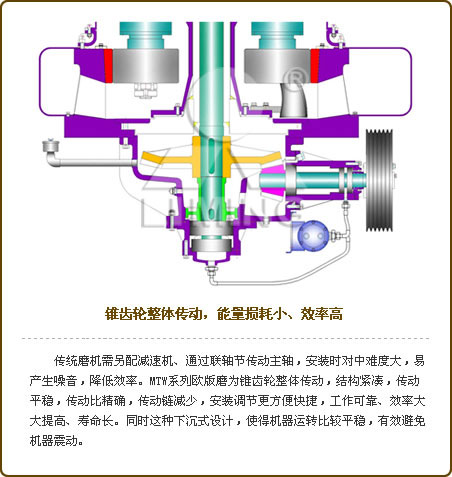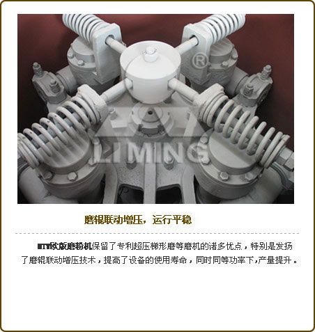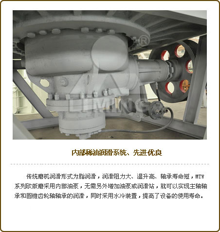 MTW系列歐版磨粉機工作原理整機為立式結構,占地面積小,成套性強,而且主機傳動裝置采用密閉齒輪箱,傳動平穩(wěn)。磨機的重要部件均采用品質(zhì)良好鋼材制造,因此整機耐用可靠。磨粉機電器系統(tǒng)采用集中控制,選型標準合理,自動化程度高,振動給料機體積小重量輕,易于調(diào)節(jié)并省電。