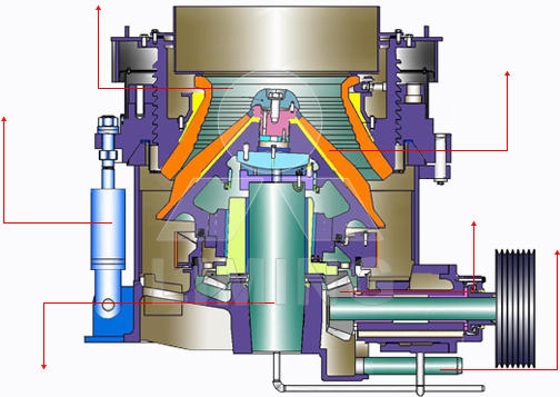 2、HPT圓錐破采用多點分體液壓潤滑控制系統(tǒng),軸承潤滑和過載保護能力更強,使整條生產(chǎn)線的自動化程度大大提高。