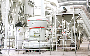 合格的石灰石塊料通過鏟車送入原料斗,經(jīng)手動插板閥進入底部的皮帶機,并通過提升機輸送至立磨。物料從進料口落入磨盤中央,在離心力的作用下,物料從磨盤中央向邊緣均勻移動,經(jīng)過磨盤上的粉磨輥道區(qū)域時,受到磨輥的碾壓,大塊物料直接被壓碎,細粒物料受擠壓后形成料床進行粒間研磨。被研磨的物料繼續(xù)向磨盤邊緣移動,直到被風(fēng)環(huán)處的強氣流帶走,而較大的顆粒物料又重新掉落到磨盤上繼續(xù)研磨。氣流中的物料經(jīng)過上部的分析機時,在分析機的作用下,粗顆粒重新回到磨盤上粉磨,合格的細粉隨氣流一起出磨。細度合格的細粉出磨后進入脈沖收塵器,并通過底部出料口之間的鎖風(fēng)閥進入倉泵進行輸送?;烊胛锪系蔫F塊等雜物隨物料運動到磨盤邊緣時,由于自身重量大而不能被風(fēng)吹起,跌落至磨機下腔,從排渣口排出機外。