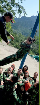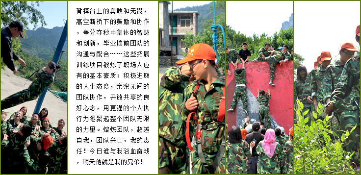 背摔臺(tái)上的勇敢和無畏,高空斷橋下的鼓勵(lì)和協(xié)作,爭分奪秒中集體的智慧和創(chuàng)新,畢業(yè)墻前團(tuán)隊(duì)的溝通與配合……這些拓展訓(xùn)練項(xiàng)目鍛煉了職場人應(yīng)有的基本素質(zhì):積極進(jìn)取的人生態(tài)度,親密無間的團(tuán)隊(duì)協(xié)作,開放共享的良好心態(tài),用更強(qiáng)的個(gè)人執(zhí)行力凝聚起整個(gè)團(tuán)隊(duì)無限的力量。熔煉團(tuán)隊(duì),超越自我,團(tuán)隊(duì)興亡,我的責(zé)任!今日誰與我浴血奮戰(zhàn),明天他就是我的兄弟!